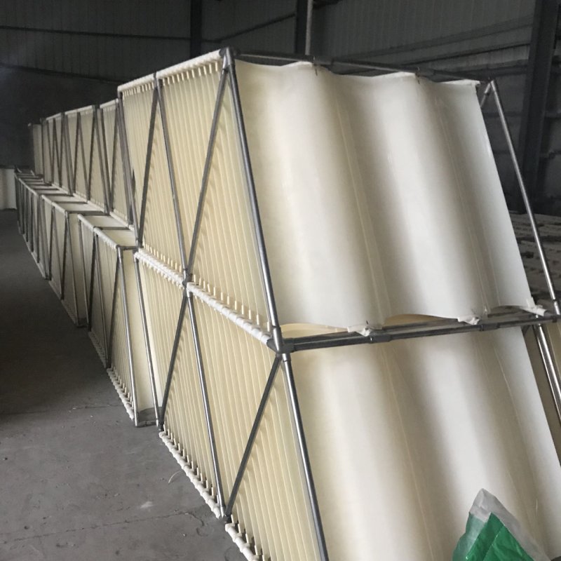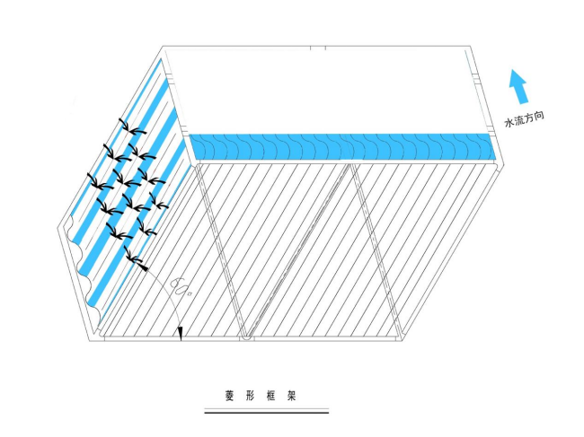 ● 波形斜板平行排列放置于斜端面框架之中,由弧形托將其固定在框架上,形成一個波形板組單元。