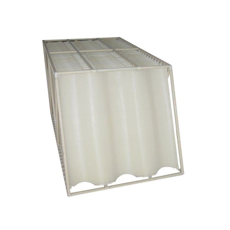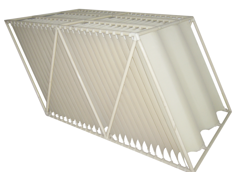 框架式波形斜板由于良好的滑泥性能、斜板內(nèi)不易積泥、框架自身剛性好,能省卻斜板底部金屬支撐架等優(yōu)異特點。2005年被威立雅水務(wù)工程(北京)有限公司首先應(yīng)用于高效沉淀池。至今在國內(nèi)外已有100多個業(yè)績。作為泥水分離澄清模塊,使用了十五年仍能保持長期運行過程中功能效果,分離出的污泥順利下滑會造成堵塞。