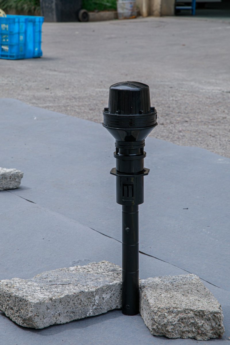 可調(diào)式濾頭由濾帽、濾桿、預(yù)埋座三部分組成。濾帽上均勻開有若干條縫隙,過濾時阻止濾料下漏,并過濾出水:反沖洗時均勻布?xì)夂团渌疄V桿上設(shè)有調(diào)節(jié)螺紋,可上下調(diào)節(jié):并設(shè)有調(diào)節(jié)瓣與預(yù)埋座內(nèi)調(diào)節(jié)瓣防脫條配合,可控制濾桿調(diào)節(jié)精度,同時固定其位置濾桿上開有進(jìn)氣縫,在進(jìn)行反沖洗時均勻配氣預(yù)埋座上有卡銷便于固定在模板上。